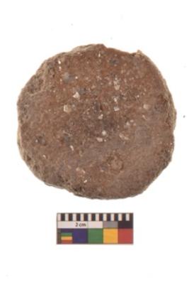 | Description / विवरण | A partially broken specimen of red ware disc with rounded and smooth edge and flat surface. |