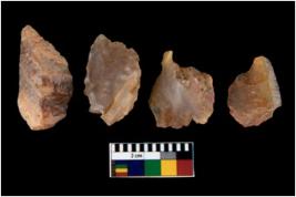 | Description / विवरण | There are n 4 utilized flake cores. There are multi directional irregular scar pattern on them. Two are tapering at one end and two have sharp edges. |