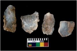 | Description / विवरण | There are n 4 ; worked utilized flakes; there are multidirectional irregular scar pattern on both dorsal and ventral face of the flakes. Two are tapering at one end. All are having sharp edges. |
