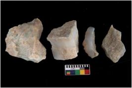 | Description / विवरण | Specimen of a cores with several broad fluted marks. Some of them are tapering at one end. |