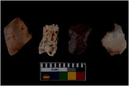 | Description / विवरण | There are n 4 flake cores. All of them are fully fluted flake cores without any trace of crested ridge flakes. Some have flat base. Some have sharp edges while some have blunted edges. |
