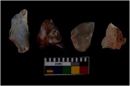 | Description / विवरण | There are n 4 flake cores. All of them are fully fluted flake cores without any trace of crested ridge flakes. Some have flat base. Some have sharp edges while some have blunted edges. |