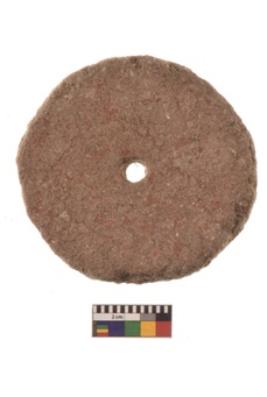 | Description / विवरण | specimen of terracotta perforated disc. It has eroded from the area around the perforation and diameter edge. The outer edge is even. It is wheel-made with well-levigated clay. It is quite light-weight. It is having smooth surface, greyish in colour and well fired. |