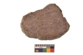 | Description / विवरण | Specimen of ground disc hopscotch made from a red ware. It has jagged edges with sign of chipping. It is rounded in shape. |