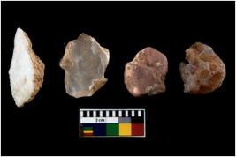 | Description / विवरण | There are n 4 utilized flake cores. There are multi directional irregular scar pattern on them. One has sharp edge and three have blunted edges. |