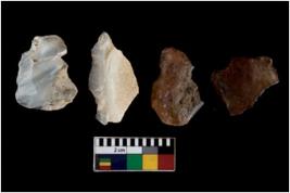 | Description / विवरण | There are n 4 ; worked utilized flakes; there are multidirectional irregular scar pattern on both dorsal and ventral face of the flakes. Two are tapering at one end. All are having sharp edges. |