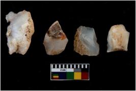 | Description / विवरण | There are n 4 utilized flake cores. There are multi directional irregular scar pattern on them. Three have flat base and one has blunted edge. |