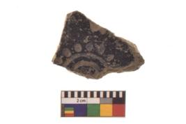 | Description / विवरण | Specimen of triangular shaped graffiti on exterior of thin coarse black ware potsherd. |