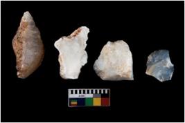 | Description / विवरण | There are n 4 ; worked utilized flakes; there are multidirectional irregular scar pattern on both dorsal and ventral face of the flakes. One is tapering at one end. Three are having sharp edges. |