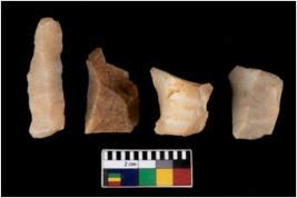 | Description / विवरण | There are n 4 utilized flake cores. There are multi directional irregular scar pattern on them. Two are tapering at one end and two have sharp edges. |