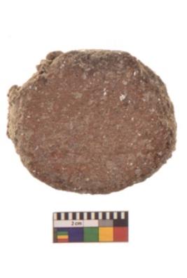 | Description / विवरण | Specimen of red ware disc with rounded and smooth edge and flat surface. It is having smooth surface areas other side is rough. |