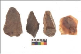 | Description / विवरण | There are n 4 flakes tool; there are large flakes with sides trimmed, Marks of secondary flaking are present on the both the faces. The dorsal is relatively flat. |
