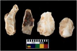 | Description / विवरण | There are n 4 utilized flake cores. Out of them two are made up of Chert and two are made up of Chalcedony. There are multi directional irregular scar pattern on them. Two are tapering at one end and two have blunted edges. |