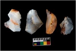 | Description / विवरण | There are n 4 ; worked utilized flakes; there are multidirectional irregular scar pattern on both dorsal and ventral face of the flakes. Two are tapering at one end. All are having sharp edges. |