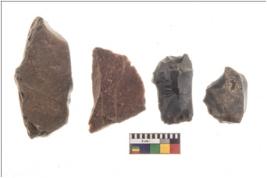 | Description / विवरण | There are n 4 flakes tool; there are large flakes with sides trimmed, Marks of secondary flaking are present on the both the faces. The dorsal is relatively flat. |