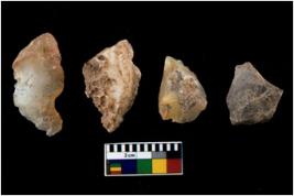 | Description / विवरण | There are n 4 utilized flake cores. There are multi directional irregular scar pattern on them. Two have flat base and two have blunted edges. |