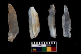| Description / विवरण | There are n 4 Flake tool; There are multidirectional irregular scar pattern on them. few have blunt edges, Some of them are tapering at one end |