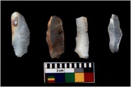 | Description / विवरण | There are n 4 flakes tool; there are large flakes with sides trimmed, Marks of secondary flaking are present on the both the faces. |