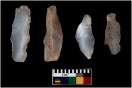 | Description / विवरण | There are n 4 flakes tool; there are large flakes with sides trimmed, Marks of secondary flaking are present on the both the faces. |