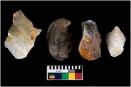 | Description / विवरण | There are n 4 ; worked utilized flakes; there are multidirectional irregular scar pattern on both dorsal and ventral face of the flakes. Two are tapering at one end. All are having sharp edges. |