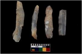 | Description / विवरण | There are n 4 flakes tool; there are large flakes with sides trimmed, Marks of secondary flaking are present on the both the faces. |
