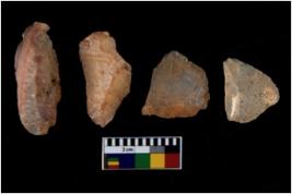 | Description / विवरण | There are n 4 utilized flake cores. There are multi directional irregular scar pattern on them. Two are tapering at one end and two have blunted edges. |