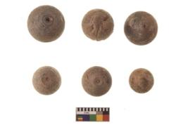 | Description / विवरण | There are n-6 Arecanut Bead, Most of these are standard convex biconvex shaped arecanut beads, with having a central perforation. One side end of the bead has been flattened. Some of them partially broken. |