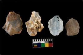 | Description / विवरण | There are n 4 ; worked utilized flakes; there are multidirectional irregular scar pattern on both dorsal and ventral face of the flakes. Two are tapering at one end. All are having sharp edges. |