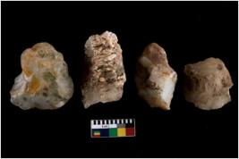 | Description / विवरण | There are n 04 objects; among them one is sharped, cut mark is visible in one core. They show impurities. |