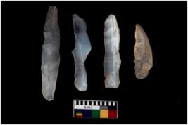 | Description / विवरण | There are n 4 Flake tool; There are multidirectional irregular scar pattern on them. few have blunt edges, Some of them are tapering at one end |