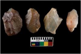 | Description / विवरण | There are n 4 ; worked utilized flakes; there are multidirectional irregular scar pattern on both dorsal and ventral face of the flakes. Two are tapering at one end. All are having sharp edges. |