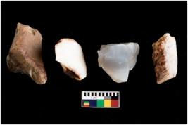 | Description / विवरण | There are n 04 objects; three of them are quartz and one is chalcedony which has blade removing marks on the body, all are sharped among them one is having groove marks. |