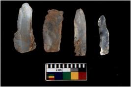 | Description / विवरण | There are n 4 Flake tool; There are multidirectional irregular scar pattern on them. few have blunt edges, Some of them are tapering at one end |