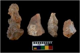 | Description / विवरण | There are n 4 utilized flake cores. There are multi directional irregular scar pattern on them. Three are tapering at one end and one has sharp edge. |