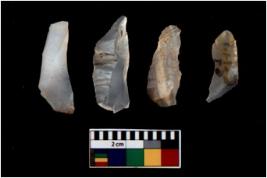 | Description / विवरण | There are n 4 flakes tool; there are large flakes with sides trimmed, Marks of secondary flaking are present on the both the faces. |