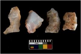 | Description / विवरण | There are n 4 ; worked utilized flakes; there are multidirectional irregular scar pattern on both dorsal and ventral face of the flakes. Two are tapering at one end. All are having sharp edges. |