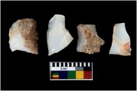 | Description / विवरण | There are n 4 utilized flake cores. There are multi directional irregular scar pattern on them. Two are tapering at one end and two have blunted edges. |