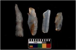 | Description / विवरण | There are n 4 flakes tool; there are large flakes with sides trimmed, Marks of secondary flaking are present on the both the faces. |