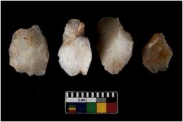 | Description / विवरण | There are n 4 ; worked utilized flakes; there are multidirectional irregular scar pattern on both dorsal and ventral face of the flakes. Two are tapering at one end. All are having sharp edges. |