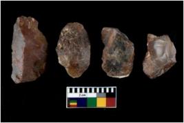 | Description / विवरण | There are n 4 utilized flake cores. Out of them one is made up of Chert and three are made up of Chalcedony. There are multi directional irregular scar pattern on them. Two are tapering at one end and two have blunted edges. |