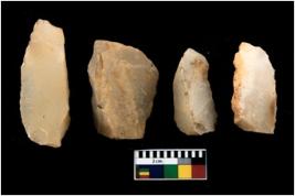 | Description / विवरण | There are n 4 flakes tool; there are large flakes with sides trimmed, Marks of secondary flaking are present on the both the faces. The dorsal is relatively flat. |