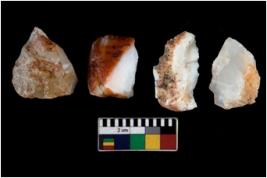 | Description / विवरण | There are n 4 ; worked utilized flakes; there are multidirectional irregular scar pattern on both dorsal and ventral face of the flakes. Two are tapering at one end. All are having sharp edges. |