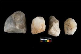 | Description / विवरण | Specimen of a cores with several broad fluted marks and some of them are tapering at one end. |