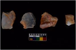 | Description / विवरण | There are n 4 flakes tool; there are flakes tool with prominent flaking marks. It made up of a large flakes with sides trimmed. It is rectangular in shaped. |