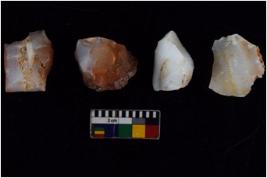 | Description / विवरण | There are n 4 flakes tool; there are large flakes with sides trimmed, Marks of secondary flaking are present on the both the faces. The dorsal is relatively flat. One is pointed functional top. |