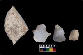 | Description / विवरण | There are n 4 cores; there are multidirectional irregular scar pattern on them. The flake scars are seen on all sides. The reverse bulb and platform can be seen. |