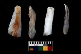 | Description / विवरण | There are n 4 Flake tool; There are multidirectional irregular scar pattern on them. few have blunt edges, Some of them are tapering at one end |