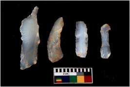| Description / विवरण | There are n 4 Flake tool; There are multidirectional irregular scar pattern on them. few have blunt edges, Some of them are tapering at one end |
