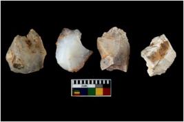 | Description / विवरण | There are n 4 utilized flake cores. Out of them one is made up of Chert and three are made up of Chalcedony. There are multi directional irregular scar pattern on them. Two are tapering at one end and two have blunted edges. |
