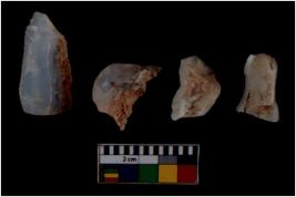 | Description / विवरण | There are n 4 of intact utilized worked cores; some of them have bulge of percussion and some are flat. |